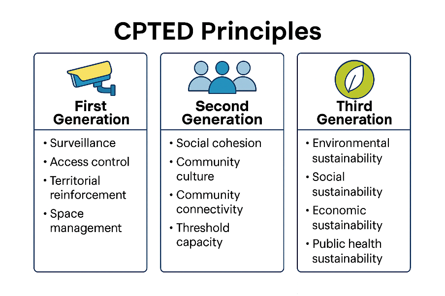 Second Generation Principles - focuses on incorporating social and community aspects to enhance crime prevention.
